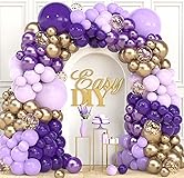 ALL-IN-1 Purple and Gold Balloon Arch & Garland Kit – Small and Large Purple Gold Balloons with Confetti – Lavender, Dark Purples, Pastel Purples Lilac Party Decorations for Birthday and Graduation