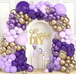 - Revealed! How to Make GIANT Balloon Garlands Just Like the Pros Everyone loves to throw a great Purple Gold themed party for their loved ones. We know that setting up decorations can be stressful and hard to manage, especially without the help of professionals. So, we set out to create an all-inclusive balloon arch purple and gold that is straightforward and easy to set up. Not only is it easy to assemble and create, but it looks JUST like the professionals, without the hefty price tag! Our purple and gold balloon arch kit is perfect for birthday parties, baby showers, bridal shower, weddings, and even graduation parties! The possibilities are endless! PLUS you get specialty gold confetti and metallic chrome purple balloons that are uniquely crafted to incorporate the signature Purple Gold theme that we all know and love. If your loved one has ever asked for a Purple Gold Birthday, you know that we have you covered! Here’s what’s included in THIS Purple and Gold Balloons Garland Kit! 100 Balloons in Assorted Sizes and Colors (1) 100x glue dots, (1) 16ft balloon garland strip, and 32 feet of Ribbon PLUS easy assembly Instructions And BONUS gold confetti and metallic chrome purple balloons Balloon sizes: 30x 5 inch, 67x 10 inch and 3x 18 inch balloons Balloon colors: lavender, dark purple, pastel purple, light purple, gold We take pride in our product and are so sure that our quality will exceed your expectations that we will 100% promise your satisfaction. If for ANY reason you are not satisfied, please feel free to reach out to us and we will make every effort to make it right. We searched everywhere, and found the most high-grade balloons for you, thicker & more vibrant than others! However, all smart people know that some balloons may need replacing – so reach out ASAP if you find one once you’ve ordered your set today. We’ll 100% GUARANTEE a full refund or replacement ASAP because we know your special event is right around the corner. Get Creating NOW with Sheryl Decor!