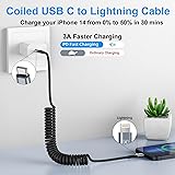 USB C to Lightning iPhone Charger Cable for Car : Retractable iPhone car charger with spring shape design, portable and not tangled. It can well save the use of space in the car and say goodbye to the hassle of data cable clutter and tangles. Elastic Coiled Lightning Cable : Coiled lightning cable 1FT (stretchable to 3FT, comfortable stetch length 1.5ft-2ft) and bounce back to normal length. You can use it in the front seat of your car and store your iPhone device in a compartment or on the phone holder of the car. MFi Certified Coiled Lightning Cable and Fast Charging: Apple MFi certified lightning charger cable meets all Apple standards with transfer speeds up to 480Mb/s and 3A fast charging. Wide Compatibility: Compatible with Apple iPhone devices, such as iPhone 14/13/iPhone 12 Pro Max/iPhone 12 Pro/iPhone 12/iPhone 12 mini/11/Xs/XR/X/SE/iPhone 8/7/6/5/iPad, AirPods. Also compatible with CarPlay. Professional After-Sales Team: If you have any questions, please feel free to contact us, we will be happy to serve you and give you an easy and pleasant shopping experience.