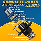 GREPSPUD 2 Sets 5 on 5'' Trailer Hub Kit for 3500 lbs 1-1/16'' to 1-3/8'' Tapered Axle #84 Spindle, Replacement 5x5'' Hub Trailer Wheel 5 Lug Bolt Idler Hub Kit with Extra Caps & Rubber Plugs