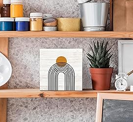 SRADMO Boho Sun Rainbow Abstract Geometric Balance Arch Shapes Wood Box Sign Desk Decor, Boho Mid Century Modern Art Wooden Block Box Sign Decoration For Home Office Shelf Table Decor