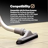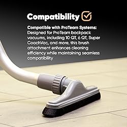 - Upgrade your cleaning efficiency with this replacement floor tool compatible with ProTeam vacuum backpack systems and Hoover commercial backpack vacuums. Designed with professional use in mind, this 14-inch hard floor brush helps cover large areas faster with fewer passes, saving time and reducing operator fatigue. It’s a perfect solution for commercial spaces like offices, schools, and healthcare facilities. This vacuum backpack accessory fits popular ProTeam models including the Super Coach Pro 10, CoachVac, ProVac FS 6, and more. It also connects easily with Hoover C2401 and Shoulder Vac Pro units, offering wide compatibility for businesses using multiple systems. Its lightweight body and ergonomic design make it ideal for extended use, while the wide head and firm bristles are built to handle tough debris on wood, tile, laminate, and other hard flooring. The floor tool installs easily without the need for extra tools, so your cleaning team can stay productive without unnecessary delays. Built from durable materials to handle daily wear and tear, it stands up to the demands of high-frequency commercial cleaning. The streamlined airflow and sturdy brush head provide consistent pickup performance to keep your work environment spotless. Whether you're outfitting a new cleaning crew or replacing worn-out parts, this generic floor tool offers excellent compatibility and value. Designed for commercial vacuum systems, it’s a reliable component for anyone using ProTeam or Hoover vacuum backpack units. Keep your operations running smoothly with a tool that's made to perform day after day.