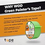 WOD PMT22G Multi-Surface Green Painter’s Tape –1" x 60 yds. Thick & Wide Masking Tape for Floors, Ceilings, Edge Finishing, Labeling, and Remodeling with Clean Removal