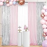 Juya Delight 4 Panels Silver&Pink Sequin Backdrop Curtain 2FTx8FT Glitter Sequin Backdrop Curtains for Birthday Party Wedding Decoration