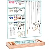 ProCase Jewelry Organizer Stand Earring Holder Organizer, 6 Tiers Earring Organizer Tree Necklace Rack Jewellery Tower Bracelets Holder Storage with Removable Wooden Ring Tray for Women Girls -Blue