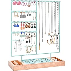 Super-easy Assembly - All you have to put together is the base and main piece and it doesn’t require screws or anything Sturdy and Stable - In consideration of stability, we designed a thickened and widened wooden base for sure helps to keep all your pieces safely hung, inside is a removable tray for your rings 144 Earring Holes - Can hold a dozen earrings along with several necklaces and bracelets, so much easier and faster to see what you have, access everything very easily unlike jewelry box; No more tangled necklaces or hunting for a matching earring Space Saving - Dimensions: 11.81 x 4.72 x 16.93 inches, doesn’t take up too much space on your dresser and keep all your earrings, necklaces and bracelets in one spot, preventing the clutter or the loss of jewelry, especially the ear rings Aesthetic - It will look so sleek on your dresser top or bathroom counter, a perfect gift for your better half, girlfriend, daughter, mother and friends in many kinds of festivals, such as Valentine's Day, Mother's day, Thanksgiving, Birthday, Christmas and etc.