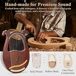 PREMIUM MATERIAL: VixxNoxx 16-string lyre harp is made of a whole piece of premium mahogany, which is characterized by high hardness and high density; the body is polished with rounded edges for a comfortable and safe grip without scratching hands; these steel strings with strong tension are smooth and durable, ensuring stable intonation BRIGHT RESONANT SOUND: Compact and efficient strings enable the lyre harp to produce a clear and bright sound with loud volume. The sound resonates through the sound box of the harp, creating a sweet and pure sound. The lyre harp's melodious tone makes it great for parties, camping, picnics, performances, recreation, therapy and teaching, etc EASY TO TUNE AND PLAY: Equipped with a tuning wrench and tuning app support, you can tune the lyre harp easily, quickly and accurately. The instruction manual makes playing the harp simple and easy to get started with, suitable for professional musicians and beginners alike GREAT CHOICE: This exquisitely designed lyre harp is a great choice for anyone who loves music. Its beautiful sound is well-suited to a variety of musical expressions and the bag makes it easy to take the harp with you wherever you go. PACKAGE INCLUDED: The instrument kit provides everything you need, including 1×16-String Lyre Harp, 1×Tuning Wrench, 3×Plectrums, 16×Extra Strings, 1×Black Bag, 1×Note Sticker and 1×Instruction Manual