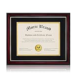 【Frame Details】:8.5 by 11 picture frame is made of solid wood with 1 black and 1 gold mat. Diploma frames 8.5 x 11 with mat and 11x14 Without Mats. Includes 2 hangers, 6 buckles, 1 back brace for table display horizontally and vertically, HD plexiglass to breakage-proof . 【Design Advantages】: High quality diploma frame 8.5 x 11 with plexiglass to make higher definition visual effects and 96% UV protection. And long-lasting prevent your photos and certificates from dust, moisture and damage. 【Visual Effect】: Classic design frame for diploma display certificates vertically or horizontally fits various decoration style in your office, study well. Suitable for graduation certificate, degree certificate, academic achievement, awards, documents and graduation photos. Vertical or Horizontal hanging to make your honor wall in your office and study perfectly. 【Perfect Gift】: College diploma frame is a super excellent gift for your brother, boyfriend, husband, family, friends, and the people you loved on Graduation season! 【Sales Service】: All-round cardboard and foam package, fully protect frame from damage, and ensure that your college diploma frame can reach your hand safely and intact.