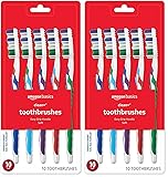 Amazon Basics Toothbrush, Soft, Full | 10 Count | Assorted Colors | Pack of 2
