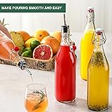 ★Product Includes - 8 pack 33oz / 1000ml swing top glass bottles (lead free) with airtight cap lids, 8 * replacement silicone seal caps- BPA free, 8 * black water-proof labels - mark the name, 2 * food-grade silicone funnels - fill liquid easily, 2 * bottle pourers - help pour out liquid easily, 1 * white pen for black labels. ★Thick Glass & Dishwasher Safe - These home brewing bottles are made from crafted of heavy-duty, sturdy transparent glass. Reduce the break risk of long time fermentation. Be safe in hot environment or in the cold refrigerator. Easy to clean with bottle brush and also be dishwasher safe. ★Airtight Brewing Bottle for Storage or 2nd Fermentation - Stainless steel buckle and durable plastic & silicone cap stopper make for a leak-proof and secure seal. Perfect for home made homebrewing beer, Kombucha, Kefir, Vanilla Extract, Juice Extract, Limoncello, Botellas Para Coquito, Homemade Liquor, Mead, Juice, Tea, Grolsch, Syrups, Milk or Eggnog and more ★Perfect Bottles for Liquid Storage - The perfect flask for storing homemade drinks, such as store or display syrup, wine, soft drinks, water, beer, juice, smoothies. Ideal for carbonated drinks as it retains the gas, such as beer, soda, coke. These decor bottles are also perfect gift display bottles for someone's birthday, thanksgiving, christmas, etc. ★Safe Package & 100% Service Satisfaction - Bottles are packaged in bubble bags with grid-shaped partition and thick carton box to prevent damage in transport. If you receive a damaged product or have anything unsatisfied, contact us and we will help you in 24 hours.