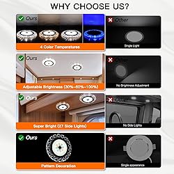 【Super Bright Dimmable Lighting】- Our RV lights come in 4 dimmable color temperatures: warm white, natural white, cold white, and soft blue light (sidelights).LED Ceiling Lights are the perfect decoration for your RV, kitchen, closet, bedroom . They are designed to provide you with the lighting you need for different needs, making cooking, reading, sleeping or any other activity that requires a well-lit workspace a breeze. 【Two Control Modes】- Use the buttons on the top of the RV lights to choose to turn the lights on/off and different color temperatures. Upgraded remote control switch,you can easily adjust the brightness you want,click dimming mode 30%-60%-100%,brightness can be cycled. You can adjust the brightness remotely from 2.5 meters away from the remote control. (Note: Brightness can only be adjusted by remote control, blue side light can not adjust the brightness) 【High Energy Efficiency】- Built-in 81 pcs 2835 SMD dimmable LED light chip beads.This 600 high luminous flux RV ceiling dome light requires only 3W, It has a life expectancy of over 60,000 hours,lasts longer and more energy efficient than standard bulb. It is also heat-resistant and anti-corrosive.(Note: This light is suitable for RV and Marine DC12V-18V voltage.) 【Slim & Easy Installation】- 0.47 inch thick RV LED light, slim recessed design fits in all tight spaces.It comes with Wire Nut and Screw, screw-type wiring cap can help fast connection. The screws can be hidden behind the screw hole cover, very neatand you just need to fixed the double dome light in any positions of your RVs with the screws.It’s widely used as a perfect replacement light for cars/RVs/trailers/campers/sea boats. 【24Hr After-Sales Service】- Each of our factory products have been strictly tested for quality, if you encounter any problems, including the use of products, you can contact us at any time, we will be 24 hours online for you.