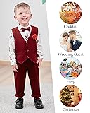 WESIDOM Toddler Boy Clothes Suit,Formal Dress Shirt+Bowtie+Vest+Boutonniere+Pants Boys Gentleman Wedding Outfits Set(Red+3-4T)