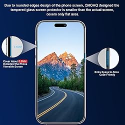 [Applicable Models]: The screen protector tempered glass and camera lens protector are only applicable for the iPhone 15 Pro 6.1 Inch version. They are made of high-quality 0.33mm thick tempered glass with a hardness of 9H grade or more, which has been strengthened at 800 degrees celsius to prevent shattered edges, scratches, and explosions. The iPhone 15 Pro screen protector glass also features a 2.5D rounded edge design, which is touch smooth and won't scratch your hands. [Special Note]: Due to the rounded design of the iPhone 15 Pro and to enhance compatibility with most cases, QHOHQ designed the tempered glass screen protector does not cover the entire screen, only the flat area. [Ultra Thin and Ultra HD Design]: 0.33mm ultra-thin tempered glass with super quick-launch application, maintain the same responsiveness and touch experience as a naked phone. It also ensure 99% retention of the original ultra HD picture quality. The surface of the iPhone 15 Pro protective film is treated with a plasma oil repellent coating, effectively preventing fingerprints caused by sweat and oil stains and improving the visibility of the screen, thereby keeping the screen as clean as new. [Easy Installation]: The screen protector iPhone 15 Pro designed by QHOHQ comes with a simple installation frame that makes it very easy to align the tempered glass with your phone screen and will not leave any bubbles. Enjoy your screen as if the protector de pantalla doesn't even exist. Please watch our installation video tutorial before installing. [AR Technology and Night Shooting Function]: The specially designed for the iPhone 15 Pro camera lens protector incorporates the latest AR-enhanced "seamless" fusion technology, which enhances light transmittance and improves the quality of photos and videos. The camera cover upgrades the "Night Shot Circle" feature to maintain the original quality of photos and videos even when the flash is turned on at night.