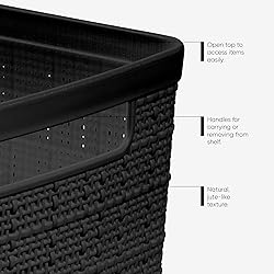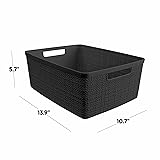 Dimensions: 36 x 28 x 15 CM / 14.2 x 11 x 5.9 IN Made from resin, the decorative jute-like woven texture gives the look of fabric without the up keep Multi-functional storage basket to use for mudroom, kitchen, bedroom essentials, bathroom or any living space Ideal for open shelf spaces, office desk organizers, laundry room organization and storage, and craft room storage Handles make these storage bins easy to carry and remove from shelves BEAUTIFUL JUTE-LIKE TEXTURE: Features a decorative, fabric-style look with the durability and easy maintenance of resin. No fraying or upkeep required VERSATILE ORGANIZER FOR EVERY ROOM: Perfect for office supplies, bedroom accessories, bathroom essentials, pantry storage, and general home organization