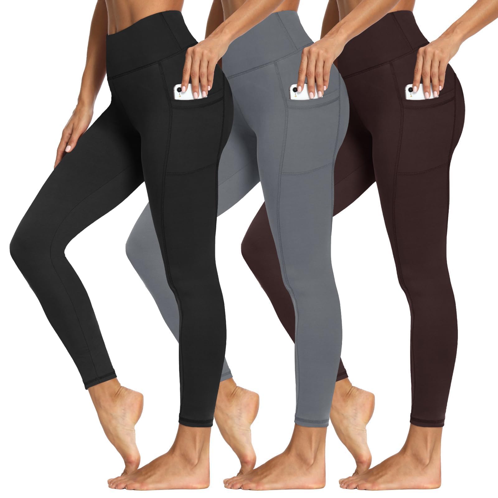 3 Pack Plus Size Leggings with Pockets for Women - High Waisted Tummy Control Spandex Soft Black Workout Yoga Pants