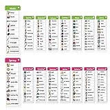 - Specifications:Quantity: 21 Cards, 40 Themes Word Lists, 426 Words. Material: 350g coated paper, double sided high-quality film.Card Size: 2.13" X 7.2" / 5.4 X 18.3 cm. Package: Plastic bag. 40 Themes as:Part 1: Shapes, Colors, Fruits, Vegetable, Foods, Desserts, Pets, AnimalsPart 2: Home, School, Sports, Place, Transportation, Music, Clothes, OppositePart 3: Family, Health Problems, Body Parts, Five Senses, Daily Routines, Emotions, Prepositions, ActionPart 4: Earth Day, Camping, Months, Weathers, Spring, Summer, Autumn, WinterPart 5: Holiday, Halloween, Thanksgiving, Christmas, Pretend Play, Fairy Tale, Easter, Party Notice:Colors may vary slightly due to different screens.Manual measurement, please allow slight size error.
