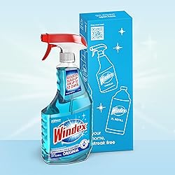 What You'll Get: One 23 oz spray bottles of Windex Original Blue Glass and Window Cleaner Surface Cleaner: leaves an amazing streak-free shine leaving your home surfaces sparkling clean Works On: removing dirt, smudges, fingerprints, and other messes from your home glass surfaces Glass Cleaner: glass surfaces, windows, glass stovetop, shower glass, glass shower doors, aquarium glass cleaner, and more Windex Commitment: spray bottles made from 100% recovered coastal plastic in partnership with Plastic Bank, is post-consumer recycled plastic collected on land within 31 miles of an ocean so that it does not reach oceans or landfills.