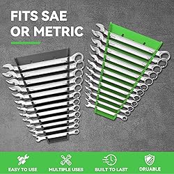 The Magnetic Wrench Holder is made of durable materials, making it a long-lasting and reliable tool storage solution. It is also easy to install and use, making it a great choice for any workshop. The Magnetic Wrench Organizer is only 1 inch 1/8 thick, making it suitable for most drawers. The magnets also ensure that the storage unit will not slide around when the toolbox is moved or the drawer is closed. This Magnetic Wrench Holder is designed to store up to 48 wrenches, ranging from 6mm to 24mm metric wrenches and from 1/4 inch to 1/6 inch SAE wrenches Powerful rare-earth magnets hold the wrench rack in place, whether it's in a toolbox drawer or on the side of a tool chest. This wrench storage tool is perfect for helping you complete your work faster. The Magnetic Wrench Organizer keeps all your wrenches organized and easily accessible.