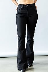 UNMATCHED FLATTERY - The Jennifer jeans are a versatile wardrobe addition that flatters every body type; The ultra-high rise and super wide flare leg design offer a unique blend of comfort and style, allowing you to make a bold fashion statement BEST MATERIALS - Crafted with a blend of 99% cotton and 1% spandex, these jeans provide the ideal combination of comfort and flexibility; The fabric ensures a comfortable fit while retaining its shape to keep you looking your best throughout the day DURABLE CONSTRUCTION - Engineered from 12.5 Oz. denim, these jeans are not only stylish but also built to withstand the rigors of everyday wear; The high-quality construction ensures durability & longevity, making them a lasting addition to your wardrobe DETAILS AND STYLE - These Kimes Ranch's black denim jeans for ladies feature hand sanding on dark denim, complemented by whisker details; This careful craftsmanship adds depth and character to the jeans, elevating your overall style wherever you go QUALITY YOU CAN TRUST - Kimes Ranch takes pride in sourcing ring-spun denim for their jeans; As a result, Kimes Ranch jeans are known for their longevity, lasting two to three times longer than competitors, providing an excellent return on investment