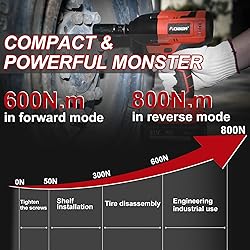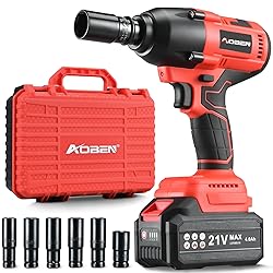 🛠【Compact & Powerful】AOBEN cordless impact wrench gets size, weight and performance well balanced. The compact design and LED light make it easier to get in tight and dark places; the powerful motor can deliver 600 N.m(450 FT/LBS) of max torque in forward mode, and 800N.m inreverse, max 3500 IPM impact rate and max 2400 RPM rotation speed. Save your time and effort during work. 🛠【Brushless Motor】The robust all-copper brushless motor can offer precise variable speed control between two speed (0-2000/0-2400RPM), and has longer product life span, stronger power, dissipates heat faster and reduces energy consumption compared with traditional engine. 🛠【4.0Ah Battery & Fast Charger】Equipped with 4000mAh li-ion battery, AOBEN power impact wrench can run continuously for hours ,and the power indicator ensures you to get the battery level at any time. Fully charged in only 2 hours with the matched AOBEN fast charger. 🛠【Large Range of Application】By setting the torque on the control panel, from automotive repairs, major construction projects, heavy equipment maintenance, replace mower blades, to product assembly, this impact drill can do all the job. The brake-stop function can protect your nuts/bolts from falling or damage after loosen. Considerate beast. 🛠【What You Will Get】AOBEN provides you convenient and practical impact wrench kit and perfect after-sale service! The kit comes with 1x AOBEN impact wrench, 1x 4.0Ah li-ion battery, 1x battery charger, 6x sockets(17, 18, 19, 20, 21, 22mm), all in a portable tool bag.