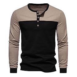 Muscularfit T Shirts for Men Cotton Long Sleeve Button Shirt Color Block Gym Workout Athletic Henley Shirts Outdoor Clothing