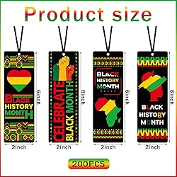 Celebrate Black History: our motivational bookmarks are designed to honor and celebrate Black History Month; Not only do they serve as functional tools for readers, but they also promote awareness and education about important historical figures and events in the African American community; Each bookmark reflects the rich culture and heritage of Black History Bulk Quantities Available: each package includes 200 paper black history bookmarks in 4 styles, 50 sheets in each style, making them ideal for book clubs, or even for personal use; With such a plentiful quantity, you can share these bookmarks as gifts or use them as teaching aids during Black History Month Pretty Design: our black history month bookmarks are colorful and eye catching; Printed with [BLACK HISTORY MONTH] and adorned with black ribbons, they are not only functional, but also pretty decorations for books Ideal Size for Convenience: with dimensions of about 2 x 6 inches (5 x 15 cm), these inspirational bookmarks fit ideally into your book or notebook; They are small enough to be easily carried around, yet large enough for comfortable handling Gift Choice: these bookmarks make nice Black History Month gifts for book clubs, or people who appreciate history and culture; Encourage reading while providing the importance and significance of Black History Month with these enlightening and educational bookmarks