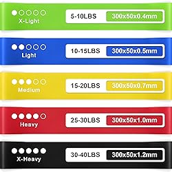 - Materials: Natural Latex Color: Multi-color Resistance Level: X-Light(5-10 LBS) Light(10-15 LBS) Medium(15-20LBS) Heavy(25-30LBS) X-Heavy(30-40LBS)