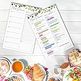 2-PACK WEEKLY MEAL PLANNER NOTEBOOK: you will get 2 packs of weekly meal planner and grocery list, 50 pages each, size 8.3" x 5.5". Menu planner for fridge, vertical layout with both meal planner and shopping list sections, and a tear aid in the middle for you to tear off your shopping list and take it to the mall. PREMIUM QUALITY PAPER: Our weekly meal planner magnetic is made of 70gsm double glued paper, which is an art paper with a smooth surface that makes it easy to write on without worrying about ink bleeding. The tops are glued together using side adhesive, and each sheet can be easily torn off. WHOLE PIECE MAGNET: The back of this weekly meal planner magnetic is a whole piece of strong magnetic sheet, the suction area is bigger and not easy to fall off, easier to attach to the refrigerator, microwave, oven, and other iron appliances and furniture. MEAL PLAN AND SHOPPING LIST: Prepare "What's for Today" according to the weekly meal plan and a shopping list to record the ingredients you need to use to smoothly implement your weekly meal planner, which is conducive to rationalization of the diet and more balanced nutrition. GET ORGANIZED: You can enjoy a healthy diet without worrying about "what to eat today". By pre-planning your weekly meals, you can save more time and unnecessary money. The weekly meal planner magnetic is valuable for busy people who want to simplify their lives and eat a balanced diet.