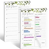 - NAME: Weekly Meal Planner NotebookSIZE: 8.3" x 5.5"QUANTITY: 2 Packs (50 Pages/book)COLOR: Green Leaf Decorative Pattern + White PaperMATERIAL: 70gsm Double Glued Paper + Whole Strong MagnetDESCRIPTION:Meal planning pads are made of 70gsm double glued paper, which is a kind of art paper, its surface is smooth, easy to write, quick-drying, and has no ink bleed.The magnet on the back we use is a whole piece of magnet, with stronger suction, adsorption on the refrigerator, microwave, electric oven, and other iron appliances and furniture is not easy to fall off.Vertical layout makes the content appear neat and organized, and easy to view. The tops of the meal planner pads are all glued with side adhesive, and each page can be easily peeled off. If you want to take your shopping list to the grocery store or store, don't worry, our planner pads have a tear assist line in the middle of each page so you can tear off your shopping list and take it anywhere.Our meal planner is elegant and simple, 2 pcs (100 pages) are enough quantity for you. For busy you, it is necessary to plan your diet and shopping list and follow the plan to ensure your body's health!
