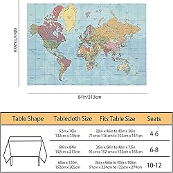 TKS MITLAN Tablecloth Political World Map Table Cloth Rectangle Table 60 x 84 Inch Vintage Accurate Global Blue Travel Map Kitchen Decorations for Home Dinner Party