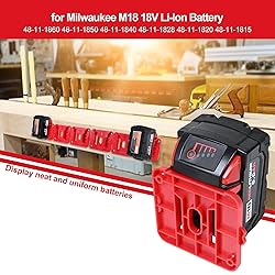 Application - Suitable for the entire series of Milwaukee M18 18V battery to fasten on the wall, bench, garage, workshop, work truck, overhead, use to inventory management, display equipment. Installation - Mount this milwaukee battery holder on your wall only with 2 screws(included). Then make your battery meet the groove to lock securely, you can invert the holder such as upside down, side, or any angle to fasten milwaukee battery holder . Features - Made of ABS plastic, which is sturdy and durable(not 3D printed). Weight as low as 36g per holder, very easy to carry and install m18 battery holder. Tidy - Keep your workspace being tidy, save your time of fumbling around on the messy table, and protect your batteries from damage. Customer service - 12 pcs Holder, 24 pcs Screws. If you have any problems, please do not hesitate to contact us, we will try our best to reply you a completely satisfying solution within 24 hours.