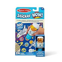 - Melissa & Doug Sticker WOW!™ is a whole new way to play with stickers! Let the adorable, collectible Atlas the Astronaut stamp, stamp, stamp its way through 24 pages of fun-filled, space-themed counting, matching, and search-and-find activities. The refillable sticker stamper comes pre-loaded with a sticker stack of 300 assorted stickers – with 100 unique designs in every stack, each sticker is a surprise! Themed refill packs are sold separately and are compatible with any Sticker WOW!™ sticker stamper. Stickers are not reusable, but are easy to remove if necessary. Fill in the activity pages and use for creative art projects, such as bookmarks, posters, cards, and more. Easy-to-remove stickers and the convenient on-the-go format with built-in sticker stamper storage makes Sticker WOW!™ a great mess-free travel activity. Sticker WOW!™ (patent pending) promotes fine motor skills, encourages creative play, and it’s satisfying, fidget fun! This product is certified by the Forest Stewardship Council. FSC certification ensures that products come from responsibly managed forests that provide environmental, social, and economic benefits, and that forests are protected for future generations. Please note that FSC certification applies to new inventory only (FSC C156584)