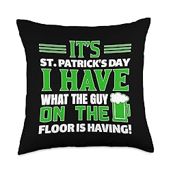 100% Polyester Celebrate St. Patrick's Day with humor! This design playfully declares, 'It's St. Patrick's Day; I have what the guy on the floor is having.' Spread the festive spirit! Embrace the Irish spirit on St. Patrick's Day with this design! Lightly hinting, 'It's St. Patrick's Day; I have what the guy on the floor is having.' Join the fun! 100% spun-polyester fabric Double-sided print Filled with 100% polyester and sewn closed Individually cut and sewn by hand Spot clean/dry clean only
