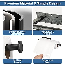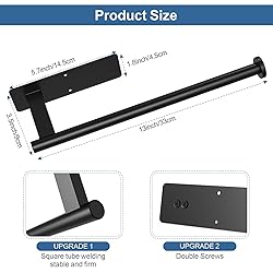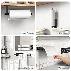EASY TO INSTALL: Just press it for few seconds, stick it on the smooth surfaces such as glass, marble, metal, and leave it alone for 24 hours. You can also install it with attached screws STURDY HIGH QUALITY: Under counter Paper towel holder is made of premium quality stainless steel, reliable and long-lasting, waterproof, rust-proof, corrosion-resistant UPGRADE AND REINFORCEMENT: The adhesive paper tower holder is upgraded square tube and double nuts at the bottom to make it sturdier. The end of our holder adopts a round design to prevent roll paper from slipping off SPACE SAVER: Instead of standing on a countertop, hanging paper towel holder can also be mounted horizontally or vertically on wall or under cabinet, help you free up enough counter space in a tiny kitchen WIDELY USED: 13 Inch paper towel holder can be used to hold towels, paper towel rolls, plastic wrap, tin foil, perfectly match your kitchen, office, bathroom, RV, etc: