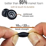 Upgrade 2 Layers : The eartips inner layer is silicone and outer is memory foam. It's more tough and durable than normal foam. Strong and Comfortable : Outer strong memory foam and Inner silicone tube.There is a buckle inside to hold tightly with earbuds. Break Strength is over 10kg / 22lbs. Better than 95% market eartips. Enhance Sound Quality : The memory foam tips noise isolation offers superior audio experience enhanced bass and good seal block out external noise. Packing List : 3 Pairs with S.M.L size in the packing . Packed by the hard PP box. TENNMAK exclusive. Note: Earbuds just for show. Doesn't include.