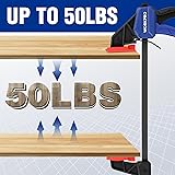 6" Mini F Clamp: The Bar clamp set includes 4 pack 6" mini clamps, the maximum opening size of the spreader is 9-3/8" and the throat depth is 1-1/2" Clamp & Spreader: The screw converts the clamp into a spreader, just loosen the screw reverse the clamp, and install it on the other side of the track and you have a spreader Quick Release: The quick-release trigger is a convenient tool, especially when frequent adjustments to the clamping position are needed or when quick removal or clamping of workpieces is required, catering to various workpiece needs. It simplifies operation and can be easily manipulated with just one hand Suitable for Fine Workpieces: The mini f clamp is perfect for clamping fine workpieces, such as small parts in modeling or detailed parts in precision woodworking projects Durable: With up to 50 lbs of clamping force, which makes it effective in clamping small objects. At the same time, its sturdiness assures long-lasting use and high stability, ensuring that the object being clamped will not easily slide or move