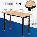 WORKPRO Adjustable Garage Workbench, 48"x22" Rubber Wood Top Heavy-Duty Work Desk with Power Outlets, Leveling Foot, 5 Heights, 1500 LBS Load Capacity Work Benches for Garage, Workshop