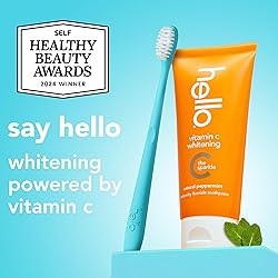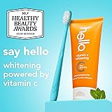 - Say hello to a brighter smile and c ya later stains with hello Vitamin C Whitening Toothpaste with Fluoride. This whitening SLS free toothpaste pack has a delightful peppermint toothpaste flavor and can give you 2 shades whiter teeth.* Plus, this fluoride toothpaste pack is infused with naturally derived Vitamin C, an alternative to peroxide for teeth whitening, and is safe for everyday use. Experience whitening powered by Vitamin C with hello Vitamin C Whitening Toothpaste and c the difference. This natural peppermint toothpaste freshens breath and removes 94% of surface stains** so you can enjoy strong, pearly whites. Use this anticavity toothpaste to strengthen enamel, prevent cavities and #glowup. Bonus, this fab formula also helps prevent future stains from forming. hello Vitamin C Teeth Whitening Toothpaste contains no peroxide, parabens, preservatives, artificial sweeteners, artificial flavors, titanium dioxide, gluten, or dyes*** and this SLS free toothpaste is vegan. As if that weren't enough magic for one tube, this anticavity toothpaste is also not tested on animals. We're serious about being friendly. *in 6 weeks with twice daily use **in 3 weeks with twice daily use ***natural annatto pigment provides orange color