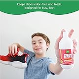 POWERED BY ENZYMES - Our revolutionary bio-enzymatic technology uses the power of good bacteria and natural enzymes to break down odors at the protein level. This means odors are ELIMINATED, not simply covered up. So bring on the fun, we'll get rid of the funk! SHOES STAY FRESH - It instantly eliminates odors and keeps shoes odor-free and fresh. NATURAL & TOXIN-FREE - With a refreshing natural fragrance, our shoe spray has a unique crisp and fruity scent, keeping shoes smelling great while providing all-day protection without the use of harsh chemicals. GRAB & GO SPRAY BOTTLE - The compact spray bottle is designed for busy families on the go. It's perfect for tossing in a gym bag or backpack, and it even fits inside of kids' shoes so you can spray all the way down to the toes. The kids will love the fruity fresh scent. MADE BY MOMS: Fresh Monster was founded by two moms with a passion for offering toxin-free, affordable personal care for all families. Proudly made in the USA.