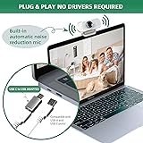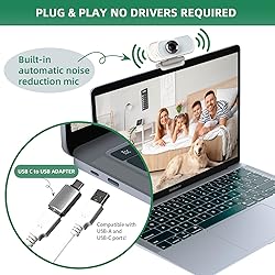 - USB C Web camera with full HD glass lens delivers razor sharp video that makes you look like a pro, with automatic light correction and HDR technology, computer camera auto adjusts color and brightness for natural lighting even in dim light Webcam with microphone, pick up your voice even at 10ft distance to make