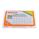 【Product Name】: Diode Assortment kit includes 35 value 500 pcs, with different currents and voltages. 【Application Scope】: Widely used in product development, student experiments, DIY, electronic circuit maintenance, production, etc. 【Diode model】: 1N4001 1N4002 1N4003 1N4004 1N4005 1N4006 1N4007 1N4148 1N5399 1N5401 1N5404 1N5406 1N5408 1N5817 1N5819 1N5822 FR104 FR107 FR157 FR207 HER107 HER108 HER203 HER207 HER208 HER308 SR160 SR240 SR360 SR2100 SR5100 RL207 UF4007 6A10 10A10. 【 Excellent Performance 】: The rectified Schottky diode has the characteristics of low leakage, low loss, corrosion resistance, high temperature resistance, easy installation and use, and stable performance. 【Transparent storage box】: Small in size, lightweight, easy to store and carry, each model is packed in a transparent bag and packaged in a sealed reusable box.