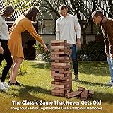 ApudArmis Giant Tumble Tower Stack to Over 5Ft, 56 PCS Pine Wooden Stacking Timber Game with 1 Dice Set - Classic Block Giant Outdoor Game (7.48 * 2.48 * 1.5In Each Block, Brown)