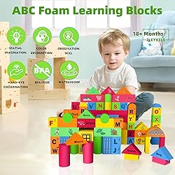 - Pleykele ABC Foam Learning Blocks for 2 3 4 Years Old Toddler, 76PCS Baby Alphabet Letters Soft Stacking Blocks Set, Sensory & Montessori Toys for Preschoolers 2-4