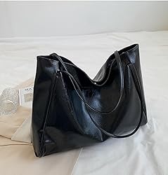 Oversize: 3.9"D x 16.5"W x 11.4 "H, The size of tote bag allows it to effortlessly accommodate all your travel essentials, including clothes, accessories, and even snacks for the journey, making it perfect for both commuting and travel. Ultra Lightweight: Just 7.05oz, Crafted from minimalist and stylish soft vegan leather, it's lightweight, remarkably sturdy and durable—offering both security and peace of mind. Secure Mode: The main bag is secured by a durable metal botton. The ultra deep bottom space allows you to put down many daily small items, and the fast metal buckle allows you to quickly access and store items. High gloss surface: This tote bag is using a high gloss glossy leather surface, it has a strong texture and is well matched with daily clothing. Whether for work or everyday use, it's an ideal choice. it is carefully selected and crafted to ensure durability and a luxurious feel. Various Occasions: It can be used as a work bag, laptop bag, gym bag, tote bag, casual shoulder bag, or travel bag. Suitable for work, study, travel, shopping, gym and more occassion.