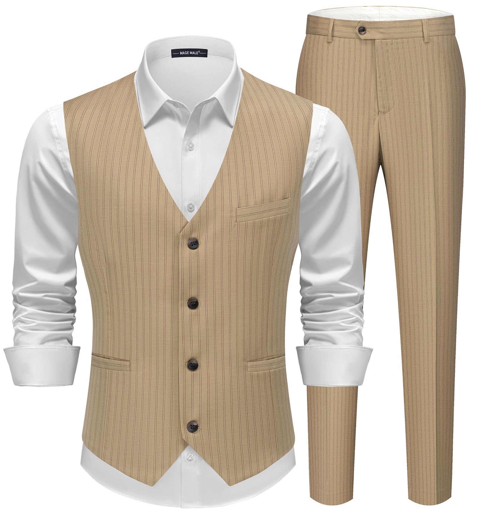 MAGE MALE Mens Two Button 3-Piece Suits Slim Fit Tuxedo Set with Blazer Jacket Vest & Pants for Wedding Prom Business