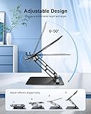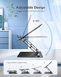 Ergonomic Design. This laptop stand adopting an ergonomic design makes it easy to raise your laptop to your perfect viewing level, preventing eye fatigue and neck pain while improving your posture. Durable and Stable. Featuring an 8kg/18lb weight capacity, this aluminum laptop stand can hold various laptops ranging from 10 to 17.3’’ without wobble. Larger-sized base with non-slip rubbers and protective hooks provides extra stability and security for your laptops. Wide Use. This laptop stand for desk is widely compatible with a variety of laptops, notebooks, and tablets , Acer Swift, Asus ZenBook, LG Gram, iPad Pro, and Galaxy Tab. Keep Cool. Made of top-grade aluminum material, this computer riser built with airy holes design on the top base provides excellent heat dissipation and prevents your laptop from overheating for better performance. Compact Design. This laptop stand holder elevates your laptop from the surface and creates a place for you to put your keyboard, iPad, smartphone, pen, and other accessories, helping create a clean and organized desktop. Easy to fold when not in use.
