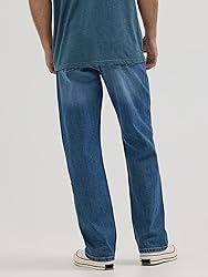 RELAXED FIT. These jeans feature a roomier fit through the seat and thigh for complete comfort and a straight leg opening for a streamlined look. FLEX COMFORT. Made with a comfortable cotton-stretch blend, these jeans allow you to move throughout your day without restriction. SUSTAINABLY MADE. At Wrangler, We Care about the planet and the people that call it home. That's why we made these pants with 100% sustainable cotton and renewable energy, saving water and reducing energy use. FIVE POCKET STYLING. This jean is constructed with authentic 5 pocket styling: (1) watch pocket, (2) front scoop pockets, (2) back spade pockets. SIGNATURE DETAILS. Finished with a zipper fly, button closure, waistband logo patch and tonal W embroidery on the back pockets for that classic Wrangler style.