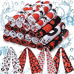 Bulk Package: this kit includes 24 pieces of basketball cooling towels, ideal for sports teams, family outings, group exercises, and more; Benefit from a budget friendly package that doesn't compromise the quality and functionality of each cooling towel Suitable Size and Reusable: effortlessly pack and carry the 40 x 12 inches/ 102 x 31 cm basketball towel where your adventures take you; You can wrap it around your neck, use it as a headband, or drape it on your shoulders; The towel absorbs water well, evaporates water quickly, is comfortable and breathable; Just soak the towel, gently wring out the excess water, and then gently shake the towel 3 to 5 times; It will cool quickly and can stay cool after multiple uses Reliable Material: experience the soft feeling of our basketball cooling towel made from polyester; A smooth, non abrasive fabric that's nice to use even for sensitive skin; This material allows you to easily use a cooling towel by simply soaking, wringing and breaking it, using the moisture in the towel to wick sweat away from your skin, keeping you cool Stylish Sporting Design: celebrate basketball enthusiasm with our cooling towels designed with basketball elements; This pack brings together 4 different styles, 6 towels of each style, allowing you to express your love for the sport while enjoying the tremendous cooling benefits and making these towels nice for basketball players and basketball teams, and making them suitable gifts for kids and teens Versatile and Compact: these basketball cooling towels are not only suitable for sports and outdoor activities, but can also be applied in hot environments like kitchens, construction sites etc.; They are nice for sports enthusiasts, but also suitable for fever or headache treatment, heat stroke prevention, or to keep cool if someone has a migraine; If you sweat a lot, flush the "salt water" from time to time, salt will slow down the evaporation/cooling rate
