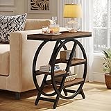 Tribesigns End Table for Living Room, 3-Tier Narrow Side Table with Storage, Wood Sofa Side Table with Geometric Metal Frame, Industrial Nightstand and Bedside Table for Bedroom