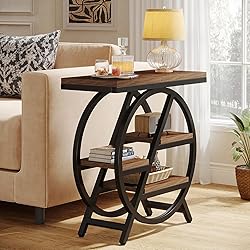 - Breathe life into dull corners with the Tribesigns End Table. Innovatively designed with three tiers of shelving space, it serves as a generous storage ground for your books, lamps, indoor plants, and keepsakes. Swap clutter with neatness in your bedroom or living area by bringing home this efficient and versatile furniture piece. The ingenuity of this small side table lies not just in its generous storage capacity but also in its adaptability. It can seamlessly blend into various settings in your home. Use it as a narrow end table next to your couch in the living room, a nightstand beside your bed, or outside for your alfresco activities.